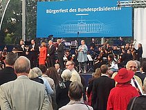 Erstmals seit seinem Amtsantritt im März hat Bundespräsident Joachim Gauck alle Bürgerinnen und Bürger ins Schloss Bellevue in Berlin eingeladen. Am Sonntag, den 9. September, kamen rund 15.000 Menschen zum Bürgerfest. Sie folgten dem Programm auf den Bühnen und in den Zelten, informierten sich über die Arbeit von ehrenamtlichen Initiativen und besichtigten Schloss Bellevue.