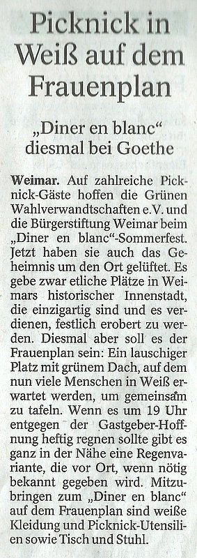 Die Bürgerstiftung Weimar und der Verein Grüne Wahlverwandtschaften bedanken sich für die Bereitstellung der Notenbankräume und bei allen Dinierenden für den netten Abend.