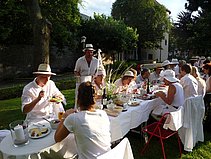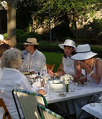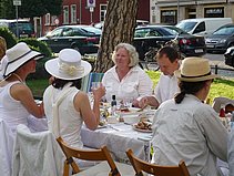 Ca. 40 Picknickbesucher trotzten den kulturellen Weimarer Konkurrenzangeboten, wie z.B. der "Nordischen Nacht", mit ihrer weißen Tafel. Vom Goetheplatz in Richtung Graben ließen sich die nach Sitte des Diner blanc gekleideten Gäste der Bürgerstiftung Weimar und der Grünen Wahlverwandtschaften ihr eigens mitgebrachtes Abendessen schmecken.