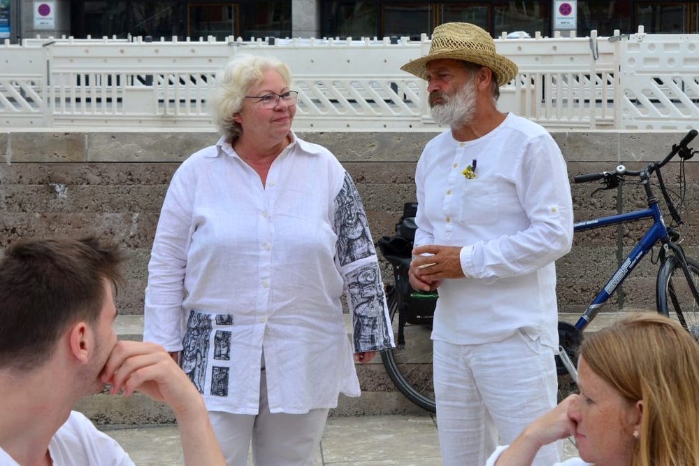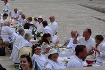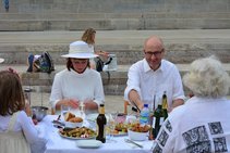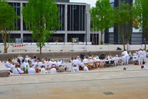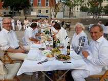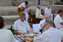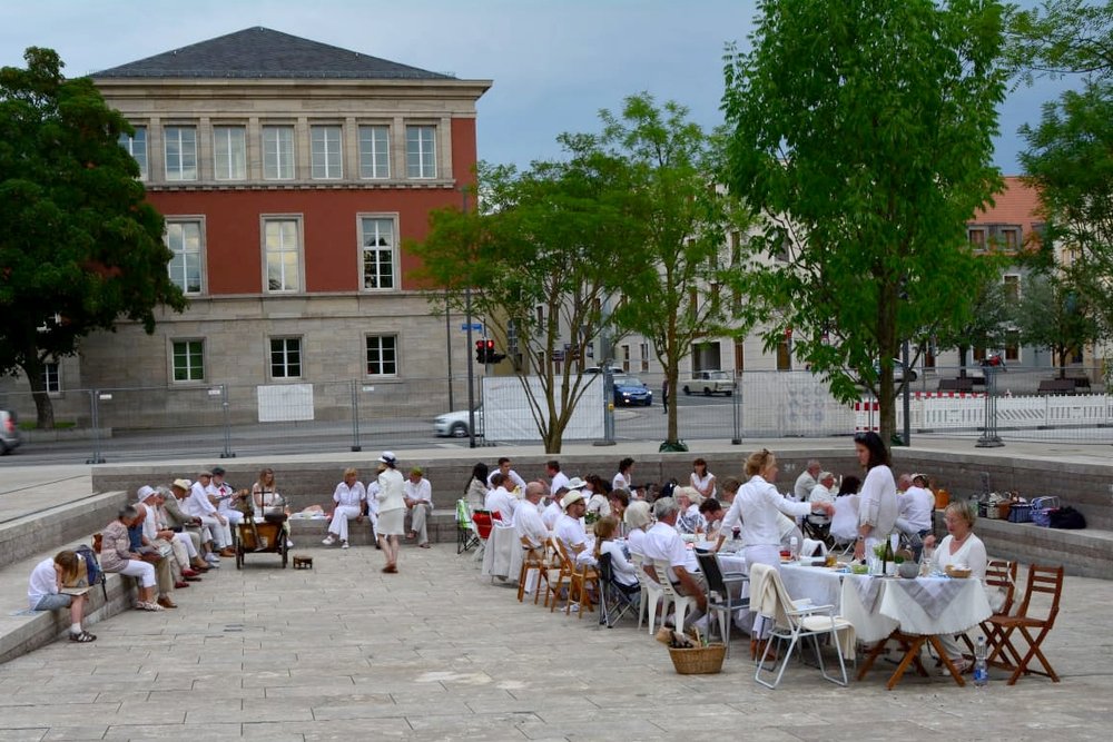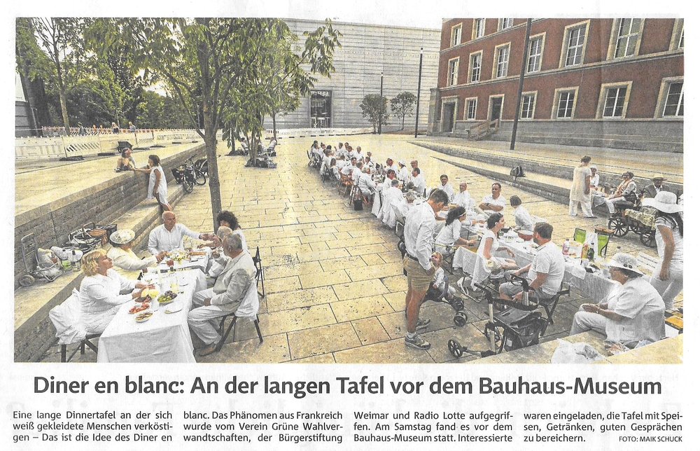 "Eine lange Dinnertafel an der sich weiß gekleidete Menschen verköstigen - das ist die Idee des Diner en blanc. Das Phänomen aus Frankreich wurde vom Verein Grüne Wahlverwandtschaften, der Bürgerstiftung Weimar und Radio Lotte aufgegriffen. Am Samstag, dem 22. Juni, fand es vor dem Bauhaus-Museum statt." Quelle: TLZ, vom 24.6.2019; Foto: Maik Schuck