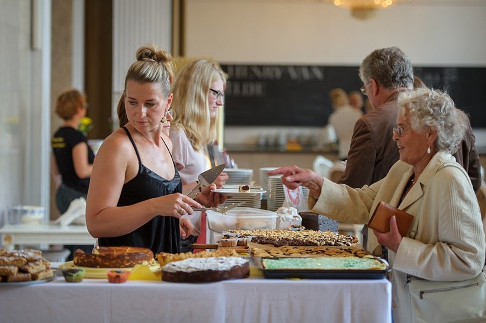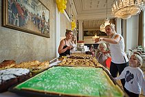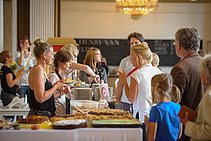 Im Rahmen des Theaterfestes am 30. August 2014 in Weimar, boten Mitarbeiterinnen und Mitarbeiter des Deutschen Nationaltheaters selbstgebackenen Kuchen und Popcorn aus einer mobilen Popcorn-Maschine an. Gegen Spende durften die Besucher sich am reichhaltigen Angebot bedienen.