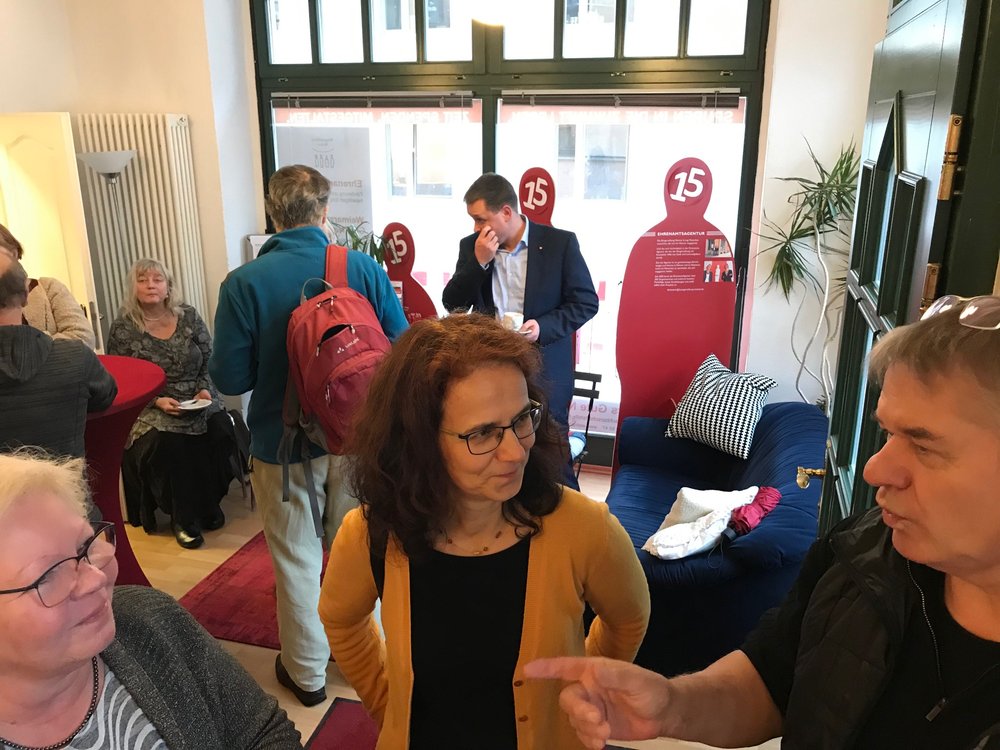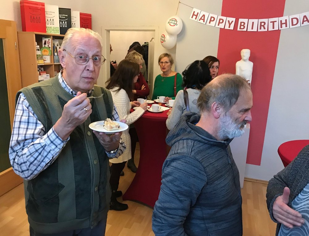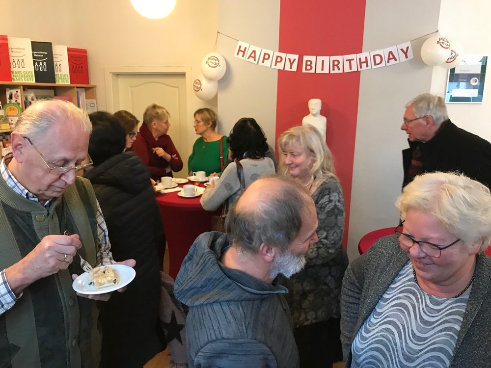 Zur Feier des Tages schnitten die vier anwesenden Gründungsstifter gemeinsam die liebevoll bereitete 15er-Torte, die Mitarbeiterin Cornelia Meyer von Weimars Gute Nachbarn gespendet hatte, an. Noch bis in die frühen Abendstunden trudelten Gäste ein, um ihre Glückwünsche, Blumen, kleine Geschenke oder auch Spenden zu übergeben.