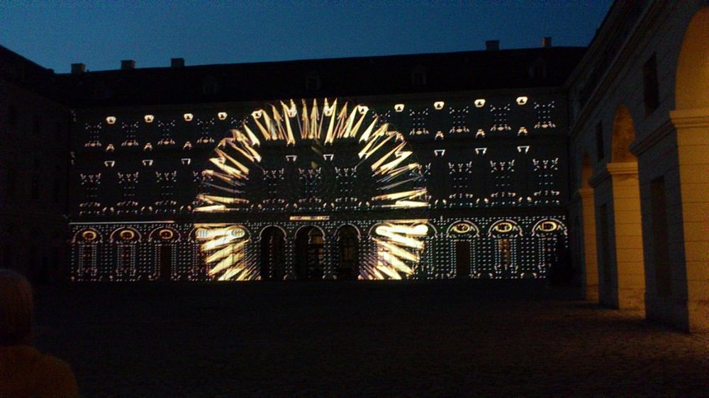 Die Standbetreuer auf dem Schlossplatz waren zudem in der glücklichen Lage, in der ersten Reihe die Projektionen mitzuerleben und das Spektakel voll genießen zu können.