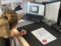 Motiv hinlegen – Knopf drücken – Foto abspeichern. Schülerpraktikantin Luca (18 Jahre) kann endlich mit der Digitalisierung starten.