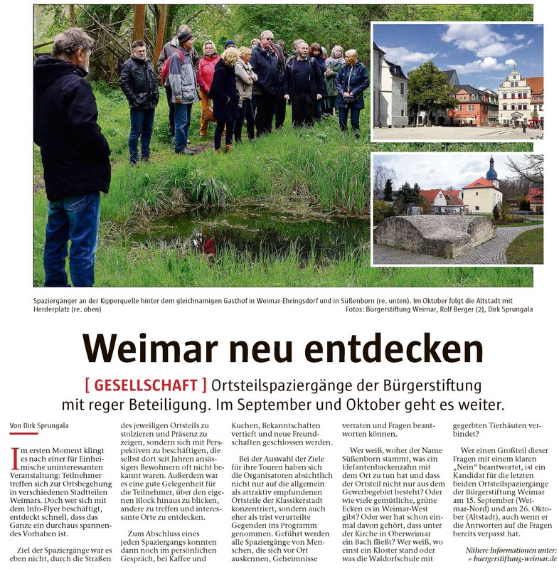 Im Gegensatz zu allen anderen Ortsteilen verfügt der Ortsteil Weimar-Nord über keine lange Tradition, sondern entstand erst in den 50er Jahren des vorigen Jahrhunderts. Erfahren Sie mehr am 15. September bei unserem sonntäglichen Streifzug durch dieses eher unbekannte Stadtviertel. Mehr lesen...