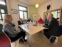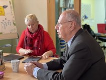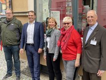 Zum offiziellen Foto hatte es Oberbürgermeister Peter Kleine zwar nicht geschafft, aber er nahm sich nach verspätetem Eintreffen trotzdem Zeit für aktuelle Informationen aus dem Seniorenbegleiterprojekt "Weimars Gute Nachbarn". Katrin Katzung, Peter Zerbst (Seniorenbegleiter der ersten Stunde) und Monika Brühl, die die Medienberatung für Senioren anbietet, berichteten aus dem Alltag eines Seniorenbegleiters, über die Wege und Hemmnisse der Vermittlung und von den Angeboten des Projekts. Die 3000 € sind für die Zukunft der Nachbarn gut angelegt.