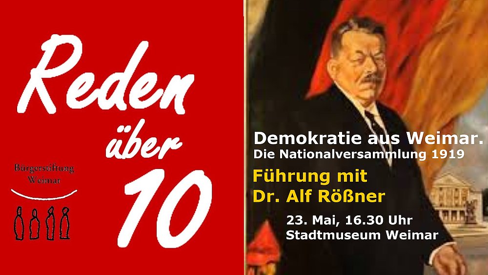 Die Sonderausstellung zum 95. Jahrestag der Weimarer Nationalversammlung möchte das gleichermaßen lokal wie überregional bedeutende Ereignis von 1919 würdigen. Zahlreiche zeitgeschichtliche Originalobjekte, Filme, Plakate, Modelle, Medaillen und Dokumente sollen das damalige politische Ringen um die Zukunft Deutschlands verdeutlichen.