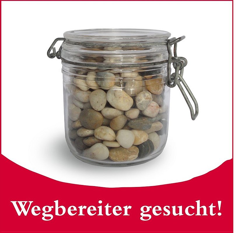 Der Kieselstein ist Symbol für Wegbereiter: Als Einzelstück ist er unscheinbar wie ein einzelner Euro, in Summe kann er neue Wege schaffen.