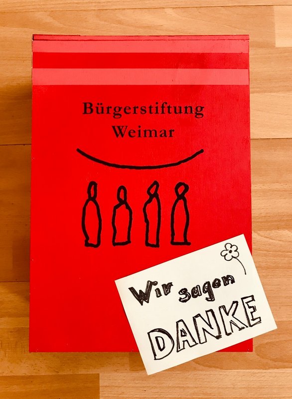 Phantastisch! Andreas und Gabriele baten die 30 Gäste ihrer Silberhochzeit statt Geschenken um Spenden für die Bürgerstiftung Weimar. Im Bauch unserer schicken Spendenbox befand sich am Ende des Abends ein wahrlich stattlicher Betrag, der nun den Projekten der Bürgerstiftung zu Gute kommen wird. Wir danken den beiden Jubilaren und allen Spendern aufs Herzlichste!