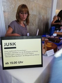 Am Ende waren fast alle Kuchen verspeist und Spenden in Höhe von 677 Euro eingebracht. Die kann das Projekt für ehrenamtliche Seniorenbegleitung „Weimars Gute Nachbarn“ gut verwenden. Wir danken allen ehrenamtlichen Kuchenbäckern, Kuchenbasarbetreuern und dem Deutschen Nationaltheater, sowie der Staatskapelle Weimar ganz herzlich für ihr wundervolle Unterstützung.