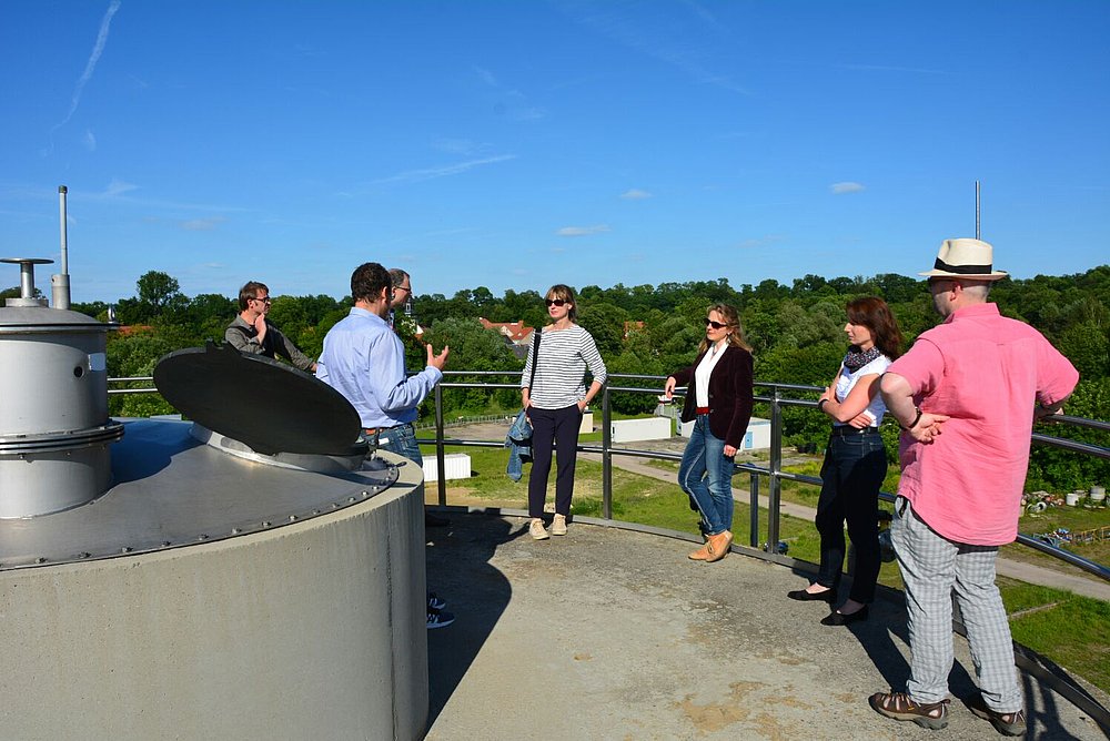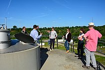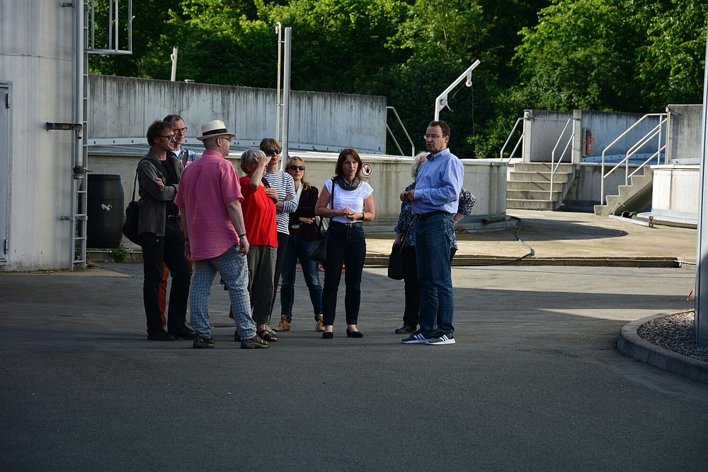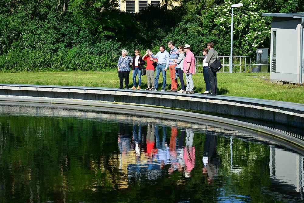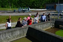 Vom Chef der Kläranlage, Herrn Jens Voigtländer, haben wir erfahren und aus nächster Nähe gesehen, wie aus schmutzigen Abwasser wieder sauberes Wasser wird. Die sehr verständlich erklärten einzelnen Verfahrensschritte, zuerst am Schaubild und dann an jedem einzelnen Anlagenteil, ließen die Gäste staunen, mit welchem Aufwand die menschlichen Abprodukte bearbeitet werden müssen, um später als klares Wasser in der Ilm zu landen.