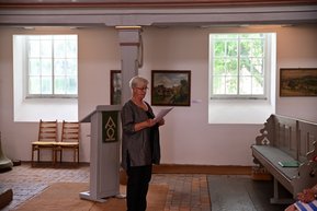 Die Taubacher Bürger hatten ein abwechslungsreiches und interessantes Programm vorbereitet und stellten viele Highlights des Ortes vor. So erzählte Brigitte Burckhardt vom Leben in Thüringens ältester verbriefter Mühle, die auch Taubachs Ursprung ist. Sybill Hecht und Christian Brunkow führten uns vorbei an liebevoll restaurierten Höfen, dem Friedhof, dem alten Pfarrhaus und einer von Kindern kunstvoll gestalteten Stützmauer eines Radweges und wussten dabei viel Spannendes zu erzählen. In der Freiwilligen Feuerwehr berichtete der Wehrleiter Thomas Uschkurat über die Aufgabenfelder und die technische Ausstattung. Zum Schluss konnten wir das Herzstück des Ortes, den Kirchplatz mit der wunderbar sanierten Kirche St. Ursula, bestaunen. Anneliese Eisenberg gab einen Einblick in die Geschichte und die Sanierung des Gotteshauses. Bei Kaffee und Kuchen klang der Nachmittag aus. Wer Lust hatte, besuchte anschließend noch die Vernissage der Ausstellung mit Bildern aus und über Taubach in der Kirche St. Ursula.