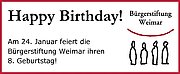 Am 24.01.2012 feiert die Bürgerstiftung Weimar ihren achten Geburtstag. Wir freuen uns auf ein spannendes 9. Lebensjahr! Wir bitten um Spenden...