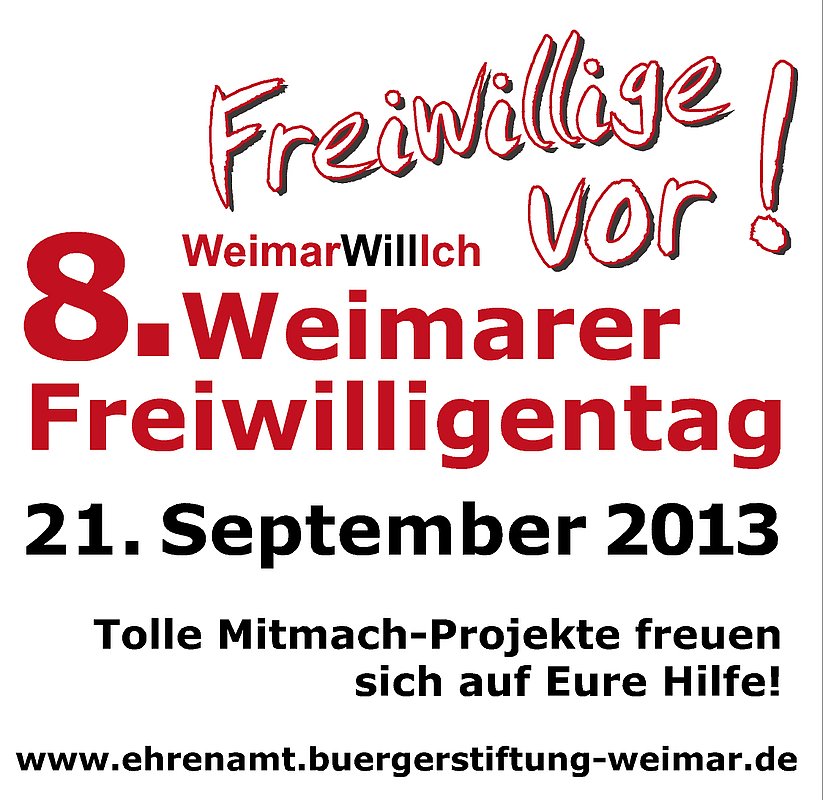Jetzt bei der EhrenamtsAgentur für ein Projekt der Wahl anmelden: www.ehrenamt.buergerstiftung-weimar.de